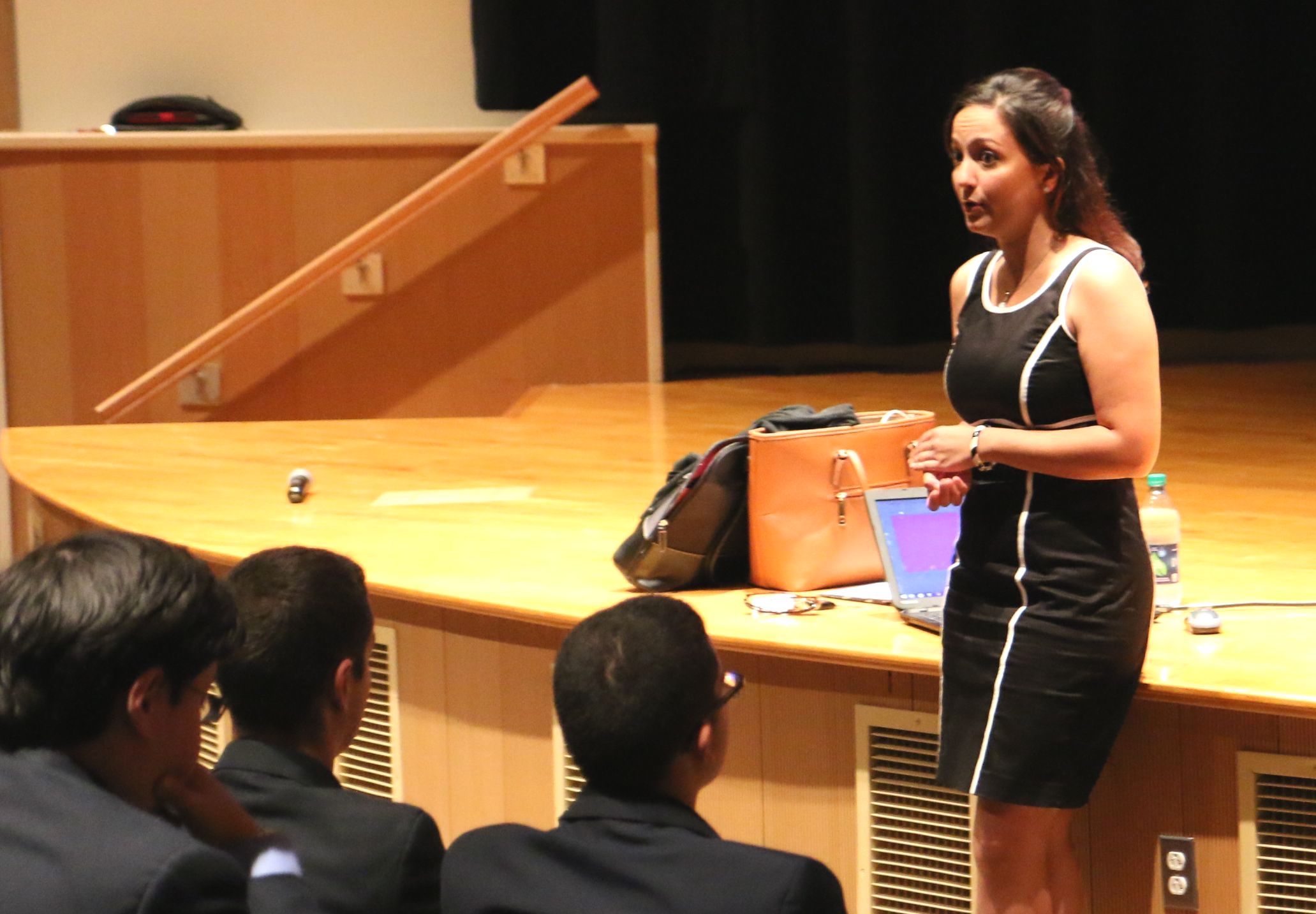 While many Long Islanders focus on the primaries for the upcoming 2016 Presidential Election, the office of Nassau County Attorney General and some seats in the Nassau County Legislature are up for grabs in the local elections this November. Ms. Crystal Berger, a field organizer for the Nassau County Democratic Party, visited Chaminade on Tuesday, October 6, 2015 to inform juniors and seniors about campaigning, the voting process and internship opportunities.