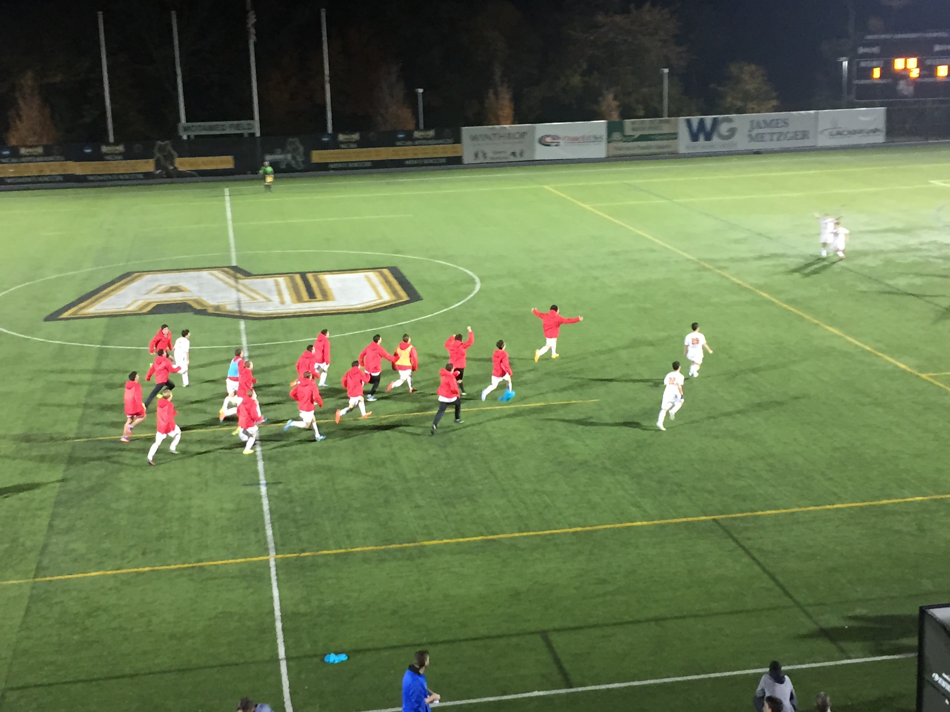 As play resumed after the half, the Flyers wasted little time going on the attack. With 20 seconds into the half, Matt Vowinkel ’17 fired a strike from outside the box between three defenders. The ball flew past the diving goalie and landed in the net. Vowinkel’s third goal of the 2015 postseason was also the most important, as it put the Flyers ahead by a score of 1-0.