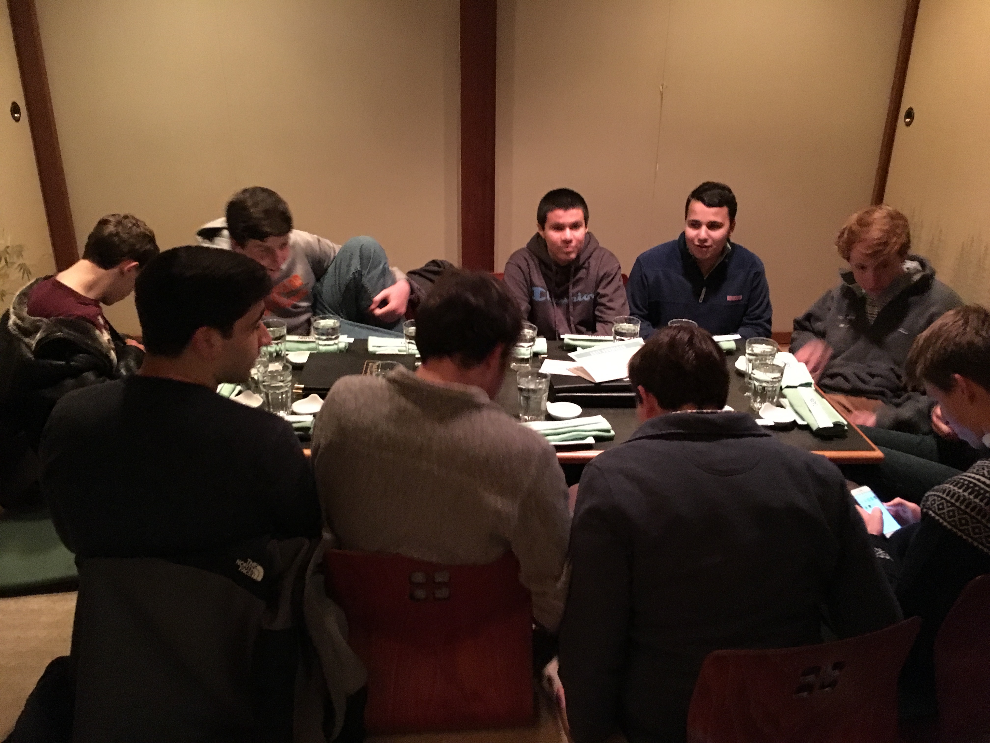 The next day, the team, accompanied by Brother John McGrory S.M. ’84, Brother Dermot Meehan S.M. ’74, and Nick DiBartolo ’15, embarked on a four-and-a-half hour bus ride to Massachusetts. Arriving and relaxing at the Burlington Marriott Hotel, they anticipated the dinner that soon approached.