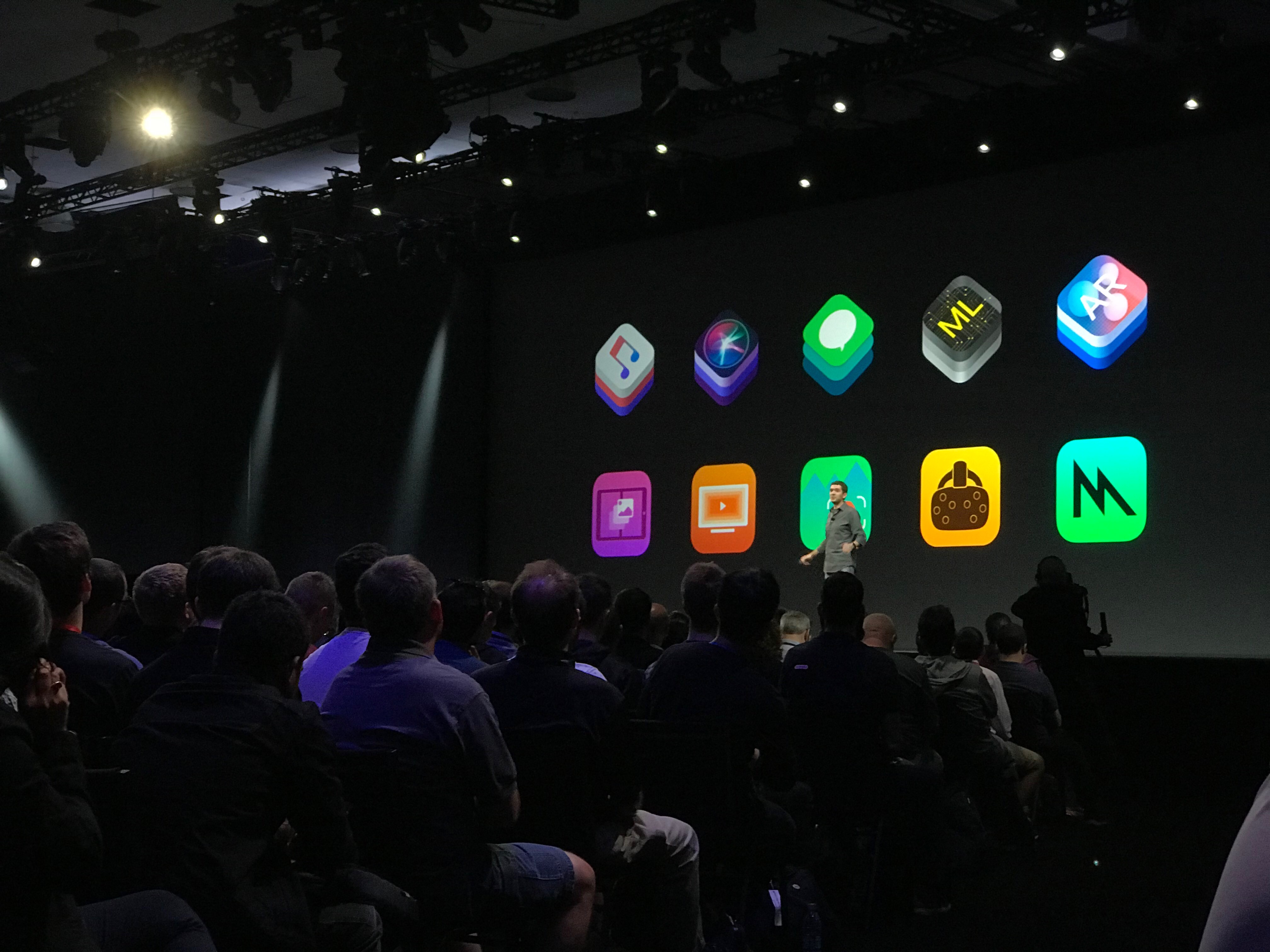 Following that, the peak of the event was focused on iOS, the mobile operating system for iPhones and iPads. Some interesting design and feature additions were made. One section that particularly interested me was the Vision and Machine Learning Frameworks. This functionality lets developers analyze (using machine learning) what a camera sees in real time, such as a person’s face or a guitar that they are holding, and then render an object on top of that person as if it were floating in real life. There are endless applications to these new features, which I am very excited to explore.