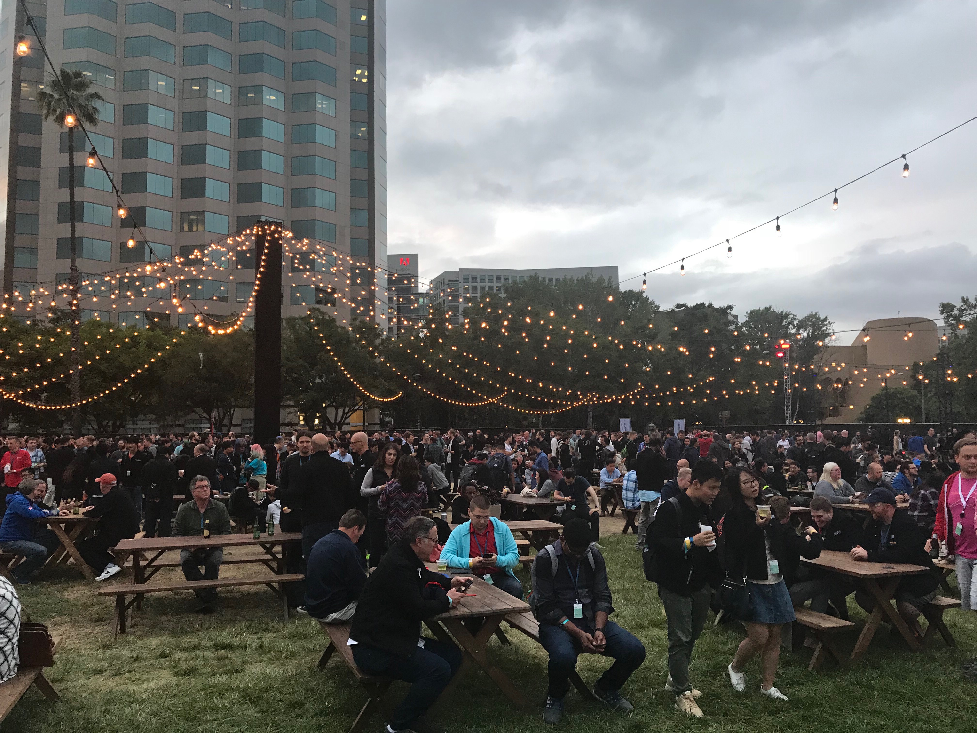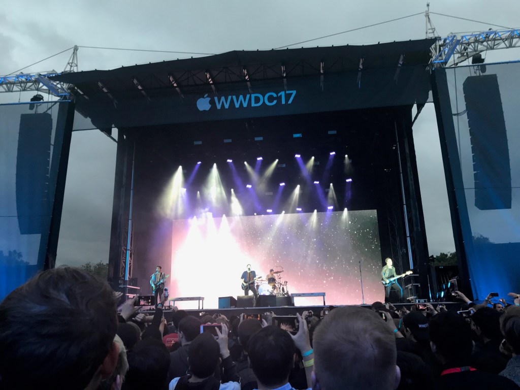 The Bash was held at Discovery Meadow in San Jose, only 2 blocks from the convention center. They had various food options, drinks, tables to hang out at, and a game area. Then, Craig Federighi welcomed Fall Out Boy to exclusively perform for us.