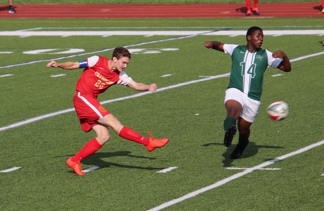 The Flyers took an early 1-0 lead thanks to Frank Artusa ‘19, who scored the team’s first goal of the season. Artusa’s goal wouldn’t stand alone as the only action in the first half, as captain John Murphy ‘18 rifled one into the back of the net during a penalty kick. By halftime, the Flyers had control of the game with a solid 2-0 lead. Having the focus of a battle-hardened championship team, the Flyers increased the pressure on the Titans in the second half. Holy Trinity’s goalie suffered an on-field injury and was promptly substituted by the Titans’ backup keeper, who was no match for the Flyers offense. Two quick goals were scored by Ben Szemerenyi ‘19 and Gavin Ford ‘18. The opposing goalkeeper eventually made his way back into the game, but was unable to stop a shot by Brendan Franko ‘18, adding the final goal to the 5-0 rout.