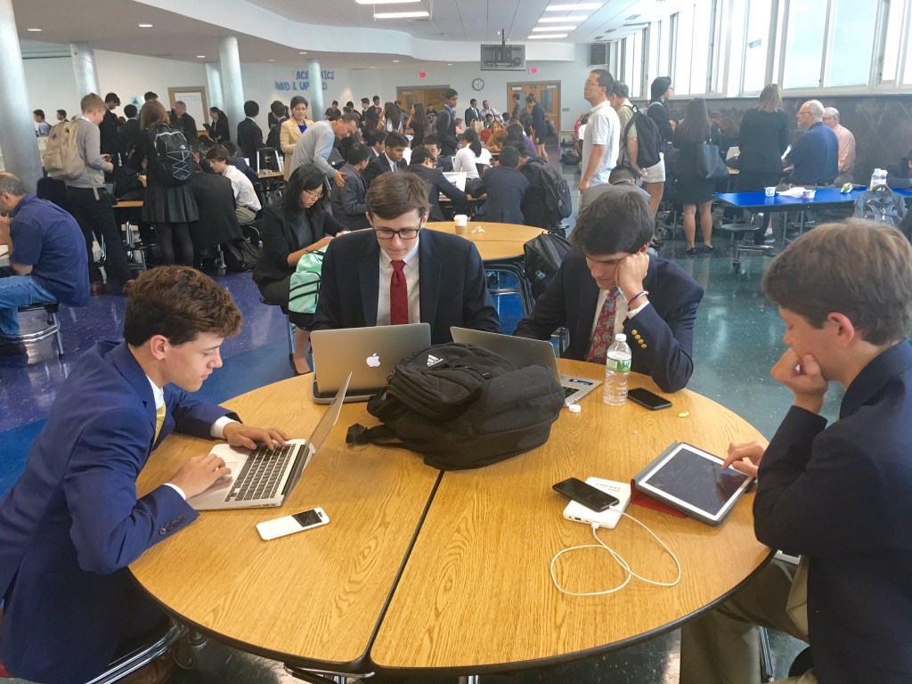 The Flyers left on Friday afternoon to journey to New Haven with speakers and debaters from Syosset High School. Debaters began their opening rounds on Friday night, while preliminaries for speakers kicked off on Saturday morning. Chaminade had a very successful weekend, with numerous Flyers advancing to the elimination rounds. The team of Thomas Flatley ’17 and Rohan Sasso ’17 competed in triple-octofinals in Public Forum Debate. John Michael Magloire ’18 also finished in triple-octo rounds for varsity Lincoln Douglas Debate. Christian Borusso ’19, Peter Vouthas ’20, and Grant Allen ’20 all advanced to elimination rounds in junior varsity Lincoln Douglas debate, with Christian Borusso winning his first elimination round but ultimately dropping in octofinals. In speech, Patrick McKenna ’18 was a quarterfinalist in humorous interpretation, matched by Ryan Malloy ’18, a quarterfinalist in student congress.
