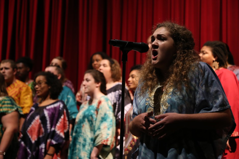 Dressed in vibrant, traditional African clothes, the chorus exuded an infectiously joyous feeling for the students. “We don’t sing for you. We sing with you!” conductor Rev. Dr. Donna M. Cox informed the audience.