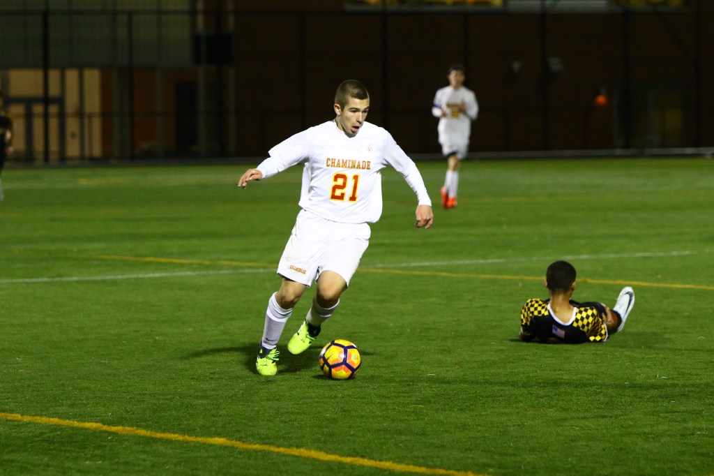 The Flyers came out a bit slow in the first half and struggled to create quality scoring chances. The Friars on the other hand, attacked the Chaminade defense. Slowing the St. Anthony’s strikers proved to be a difficult task for the Flyer back-line, but senior captain John Murphy and left-back Chris Mercadante, as well as juniors Francesco Artusa and Nico Primavera all played excellent games and refused to concede. Chaminade goalkeeper A.J. Rumfola was a brick wall inside the net, making a number of clutch saves to keep a clean sheet. The two teams entered the halftime break locked in a scoreless draw.