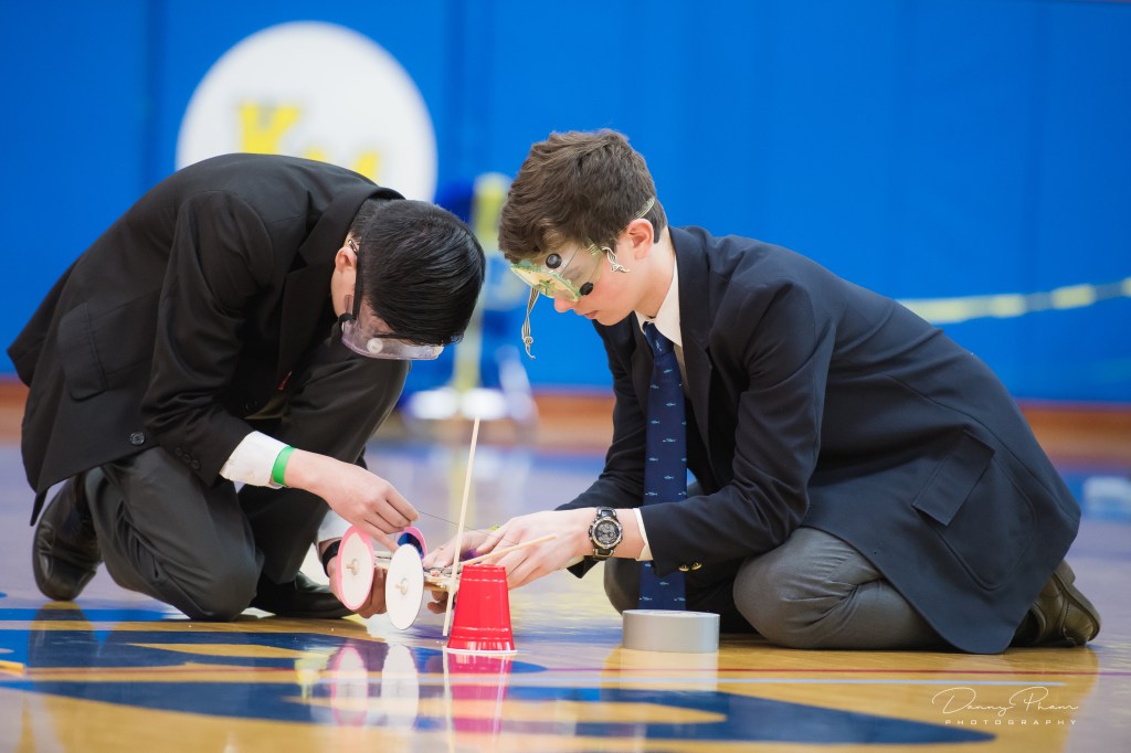 On Saturday, dozens of Chaminade students traveled to our fellow Marianist high school, Kellenberg Memorial, in Uniondale. Divided into three teams – A, B, and C – they participated in a day of high-stakes competition against 29 other squads at the Nassau-West Regional Competition to determine who would qualify for the New York State tournament. In order to do so, Chaminade needed one of its teams to finish the day ranked in the top four. Like golf, the goal at a Science Olympiad competition is to put up as few points as possible. (For each first-place finish, a team is awarded one point, and so on.)