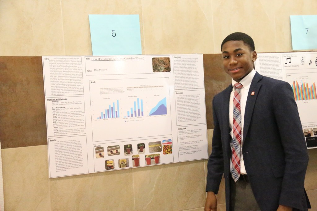 Grant Natindim ’21 discovered how artificial and natural decomposers affected the rate of decomposition on plants. “I’m satisfied with the work I put into my project,” said Grant. “It was a fun and interesting experience to research what chemicals were used in herbicide to decompose plants.”