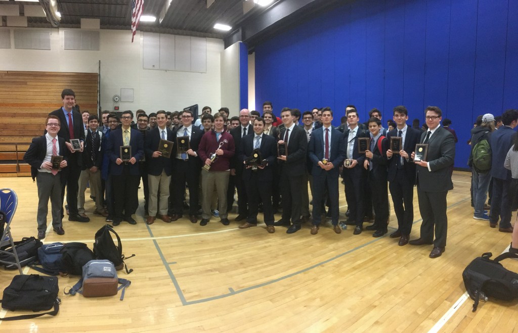 An impressive number of debaters “broke” into elimination rounds on Saturday. In Varsity LD, Seniors John Magloire, Aidan Fitzgerald, Dan Hepworth, and Sean Lochner advanced into octafinals. In Novice LD, Freshmen Steven Jones, Kyle Klugewicz, Michael Bellia, Pat McMillan, and Jack Viscuso advanced to double-octafinals and then octafinals. Sophomores John Marchiel, Charlie Weiler, and Grant Allen proceeded to octafinals in Intermediate LD. The team of Jack Valentino ’18 and Ryan Malloy ’18 worked their way to semifinals in Varsity Public Forum, as well.