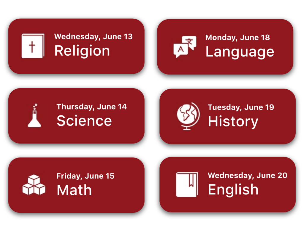 As usual, Religion is up first on Wednesday, followed by Science and Math.