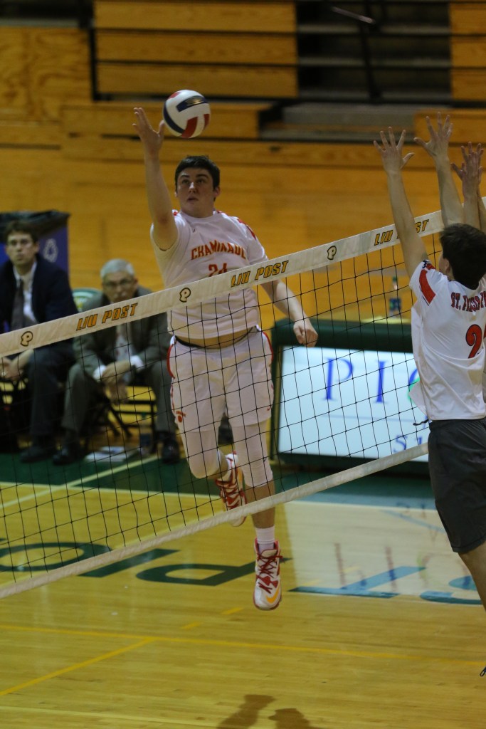 The Chaminade varsity volleyball team capped off another phenomenal championship season on Monday, May 21. The Flyers defeated St. Francis Prep in a five-set match to claim the NCHSAA title for the second year in a row.