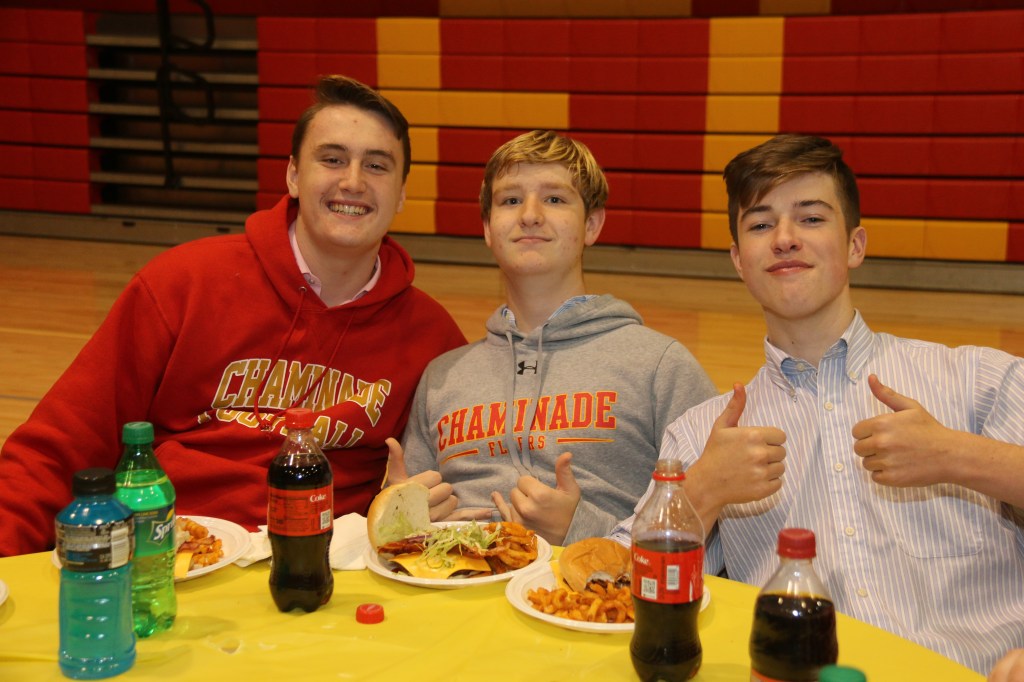 To begin the evening, the juniors gathered in the Activity-Athletic Center for a communal dinner, which consisted of a build-your-own-burger station with an abundance of toppings to enjoy. Curly fries and drinks rounded out the meal. While indulging themselves, juniors had a chance to talk with their friends and teachers and enjoy their time together.