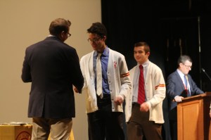 Mr. Scarola then returned to the podium and thanked everyone for celebrating this year’s fall athletes. To conclude the evening, Bro. Tom Cleary, S.M. ‘81 and Mr. Scarola presented a coaching award to Mr. Anselmo in recognition of his twenty-fifth year of coaching. Students and coaches alike are now looking forward to building upon this year’s successes and preparing for next year’s season.