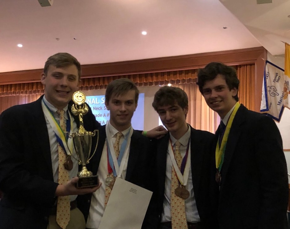 On February 2, 2019, Chaminade’s A, B, and C teams arrived at Kellenberg Memorial High School for a long but exciting day of competition. The awards ceremony did not start until 6 P.M., and the wait certainly felt much longer than it actually was. When the ceremony began, the varsity team immediately started to see impressive results. Out of the twenty-three events in which students competed, Chaminade’s varsity group earned medals in twenty-one of them, meaning they finished within the top eight rankings of these events. This achievement surpassed last year’s, when students earned medals in eighteen events. In addition, every student on the varsity team earned at least one medal.