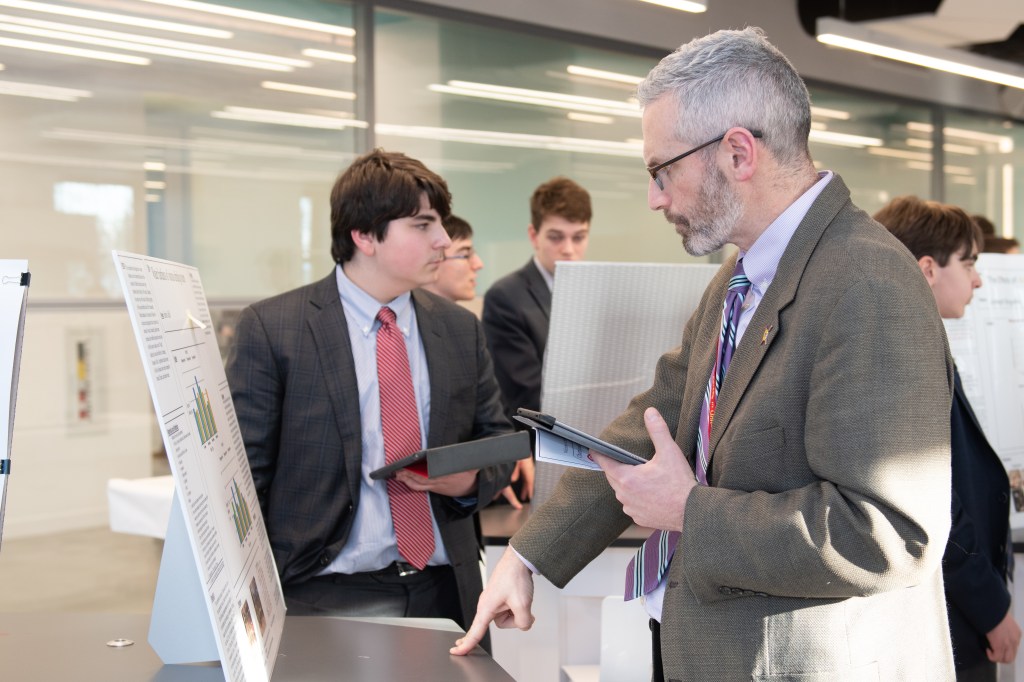 Students gathered in the STRC on Wednesday afternoon to attend the Science Research Symposium. Throughout the year, members of the Science Research Club have been working hard to design and conduct their own experiments. These experiments answered questions ranging anywhere from “What study method best fits your personality type?” to “What does vaping do the body?”. Members of the club showed their experiments to faculty, family, and fellow students.
