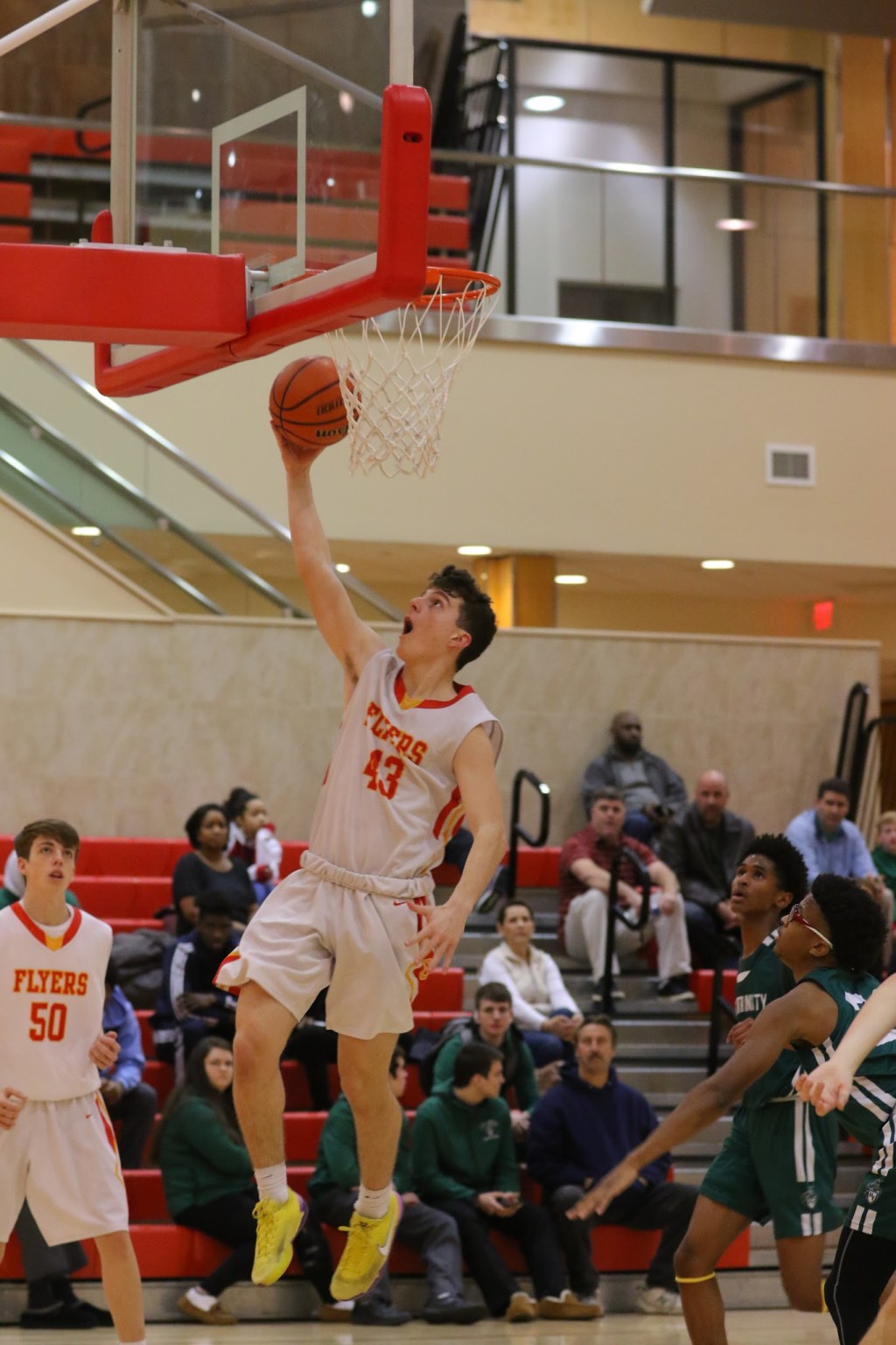 Coach Murchie attributed much of his team’s success to the athletes’ ability to play as a cohesive team unit. As he put it, “It is always a complete team effort.” Coach Murchie also honed in on a few individual players that have made some especially key contributions to the team’s success so far. He highlighted the skill and dedicated work of players Kieran Ambrosi, John Buerger, Albert Knaus, and big man Deepuk Edmunds. Edmunds is able to use his height effectively in a way that makes him a very valuable contributor on the boards and in the post. These four Flyers all average upwards of 9 points per game, and are quickly emerging as upcoming superstars in Chaminade High School’s basketball program. The coach also pointed out the contributions of Gianluca Mosheni and Greg Cantwell. He commented that they are “vital parts to the teams success” because of the tough work they put in on the court.