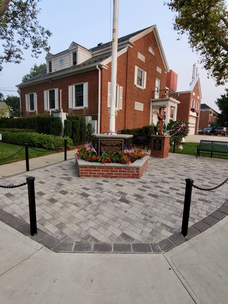 Lieutenant Breslin offered insight about the impact that these personalized pavers had on the community, saying, “Steven was able to incorporate the entire Village of Stewart Manor and surrounding neighborhoods through his fundraising efforts….Many were from residents who just wanted to show their patriotism, while others remembered specific people who perished on that tragic day. One person who was memorialized was Wells Crowler, who saved over 80 people on September 11, 2001. Wells made the supreme sacrifice. He was a college roommate and friend to a resident. The paving stones bring a clean look to the area around Village Hall, and the benches give residents and visitors a place to reflect on those who helped so many.”