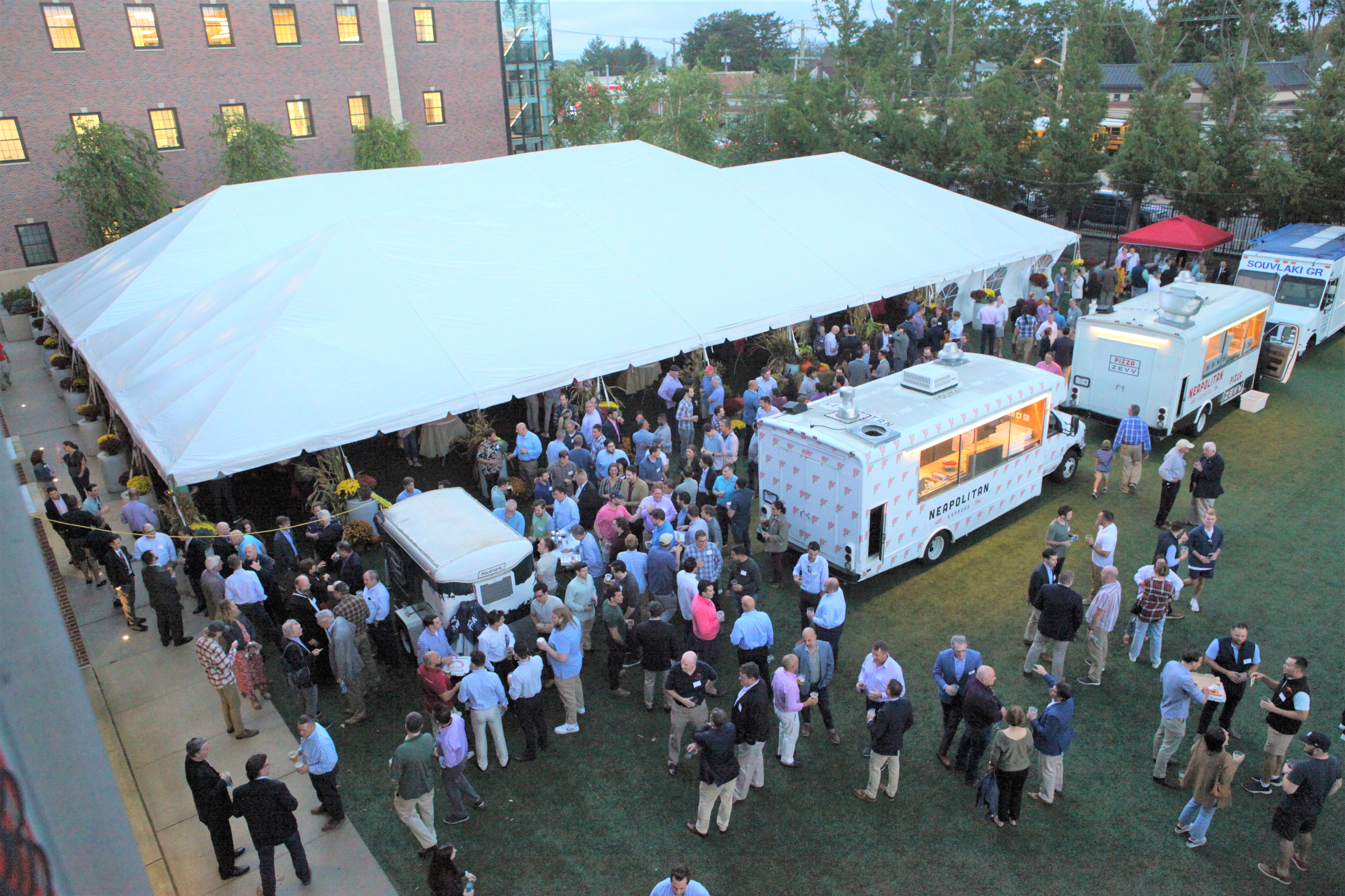 Matt Gonyon ‘11 from Cathy’s Cafe supplied the food trucks, and John Liegey ‘81, the co-founder of Greenport Harbor Brewing Co., supplied beer. Marty Hettrich ‘90 and Chris Merlo ‘90’s band, self-titled “Dee Merit and The Grey Slips,” poked fun at the infamous Chaminade punishments.