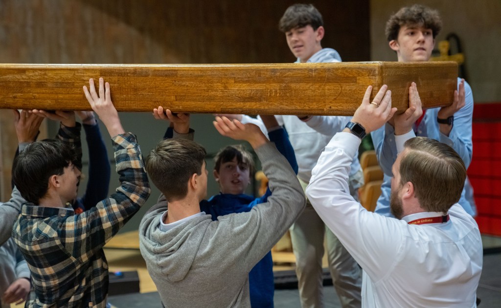 A basketball game may have been played hours earlier on the AAC floor, but the Sacristans go in and transform the space into something else entirely. McCarthy confirmed, “We turn a gym into a chapel, essentially.”