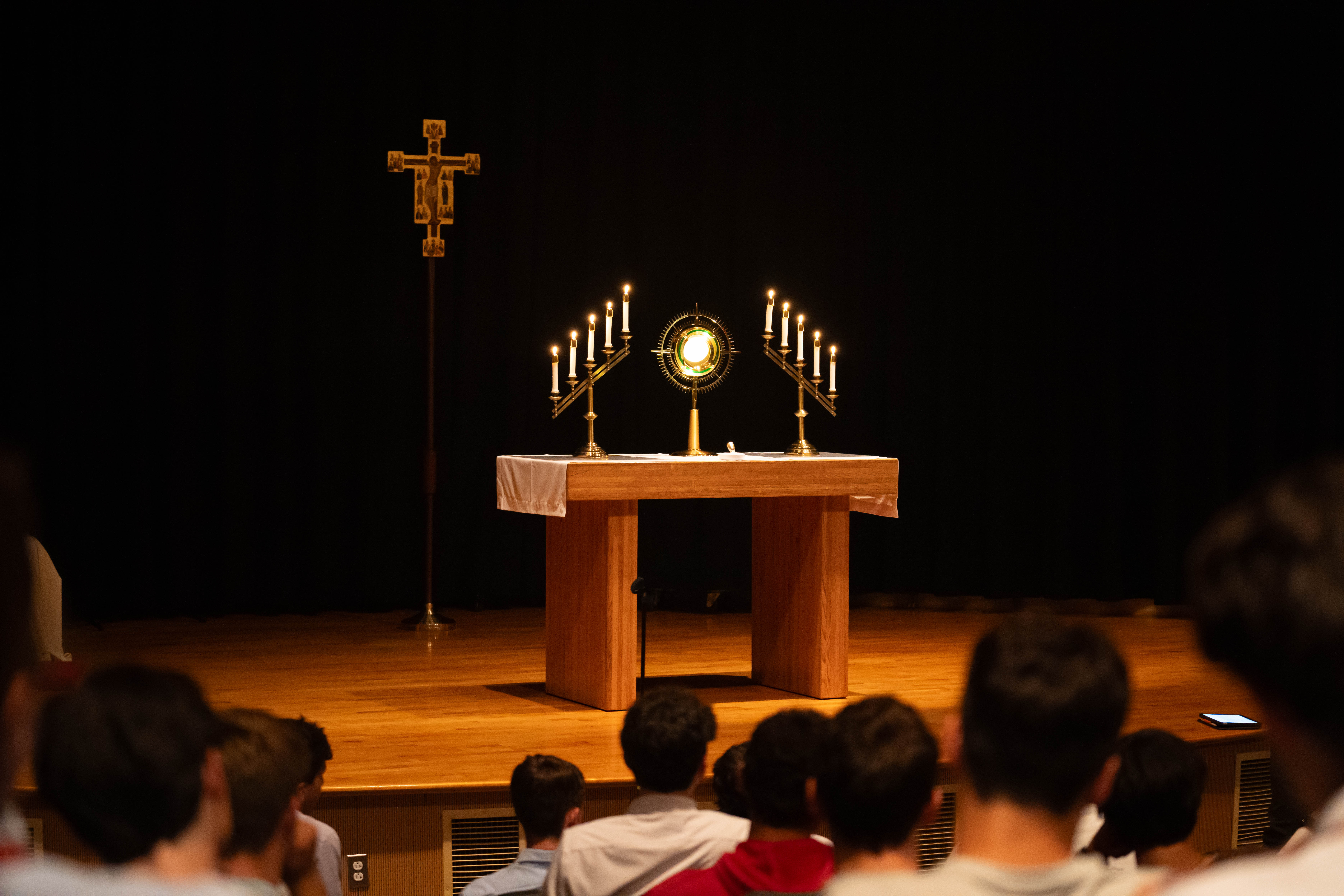 On Thursday October 3rd, 2024, a little under half of the Class of 2026 gathered at the Activity-Athletic Center to attend the school’s annual junior evening of recollection, a class-wide gathering for students to deepen their faith alongside their fellow Chaminade men. At the start of the event, the students & some members of the Chaminade faculty partook in a great class dinner of hamburgers and hotdogs, courtesy of the event organizers and student volunteers assisting them. Surrounded by faces both old and new, everyone took the chance to enjoy each other’s company and wind down going into the event’s latter half. After about an hour of eating and socializing, everyone headed into Hearst Auditorium to attend Eucharistic Adoration led by Fr. Peter Heiskell, S.M.’86. During adoration, Mr. Michael Dolce ‘99 recounted a life-changing encounter with the Lord during a particularly rough time in his life. In a very emotional retelling, he went on to explain how his faith and prayer life were instrumental in overcoming the challenges life threw at him and his wife on their journey to start a family and become parents. Following this, the juniors got the chance to pray silently and reflect upon Mr. Dolce’s moving story for 30 minutes. After which both Mr. Michael Griffin and Fr. Peter brought the night to its conclusion, firstly with a blessing and then a reminder to the junior class to go forth in their remaining time at Chaminade with a commitment to the values of community and faith.