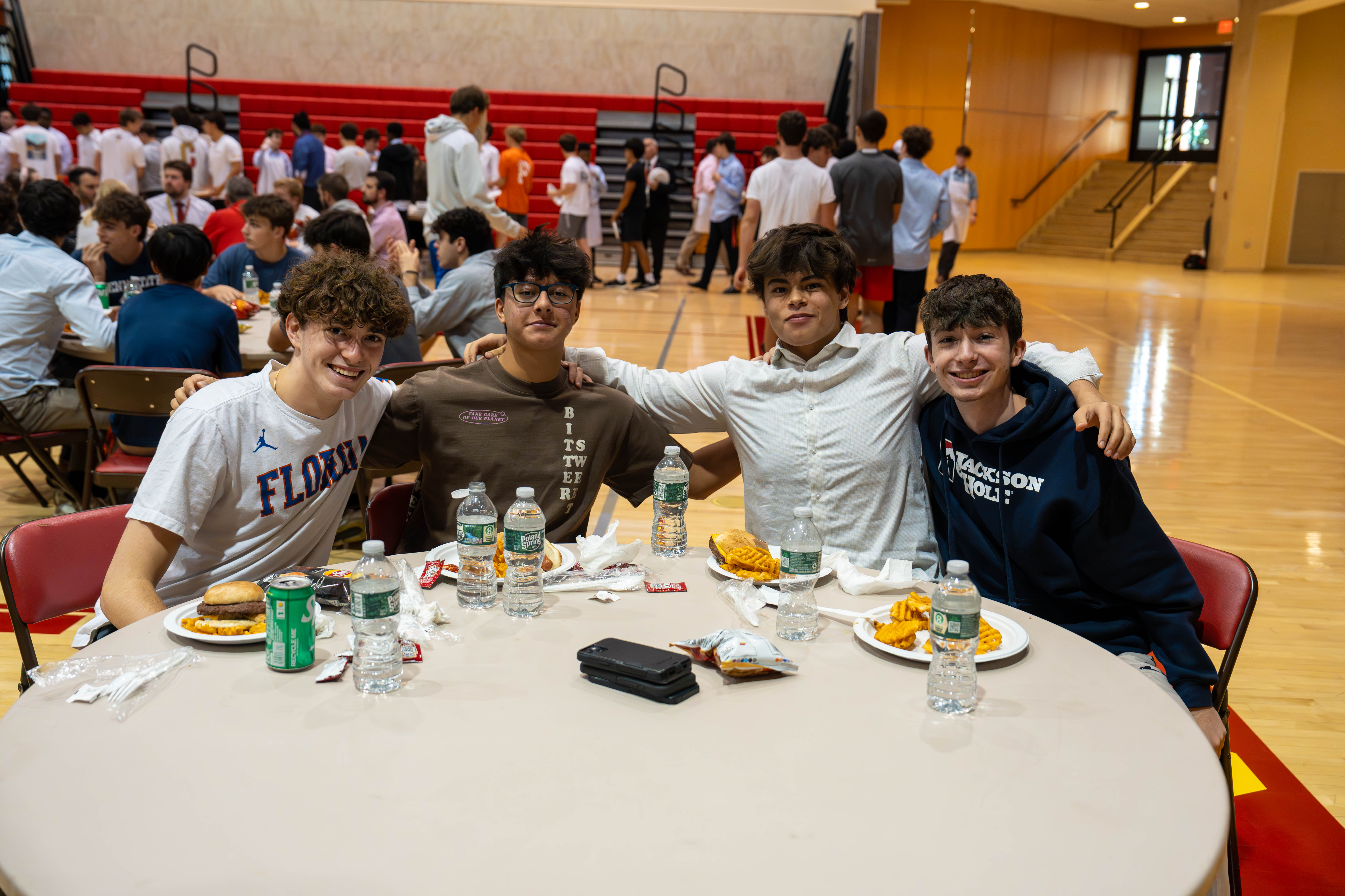 On the evening of Thursday, September 26, 2024, dozens and dozens of seniors convened in the Activity-Athletic Center for a night of food, faith, and friendship in HUNGER, the Senior Evening of Recollection. Nobody compelled the students to participate – many had homework to complete and tests to prepare for – but they compelled themselves, wishing to take advantage of a rare opportunity to come together with their entire class. Unlike the Evenings of Recollection held for the lower grades, this event did begin with dodgeball or another organized group activity. Rather, students simply sat at a table, put their phones away, and interacted with their teachers and with one another, which reflected the maturity of the senior class, and the trust of administrators in the bonds that they had formed with one another. Everyone was lucky to enjoy freshly made steak, chicken, and waffle fries, which had many coming for seconds, thirds, and even fourths. All the while, everybody was able to enjoy each others’ presence in a way that is rarely possible with the stresses and distractions that are ever-present at this stage in life.